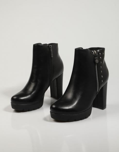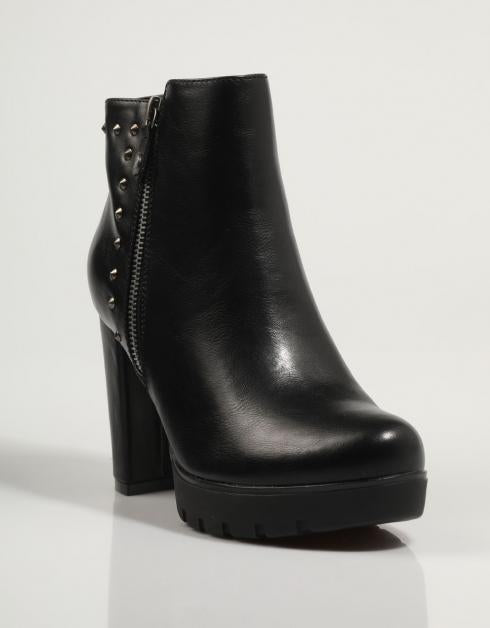 Botín de mujer con tacón de 10 cm y altura de la caña de 10 cm. Cierre con cremallera lateral. Botín fabricado con material sintético muy cómodo y que se adapta perfectamente al pie por su flexibilidad. Suela de goma para aislarte del frio y antideslizante. Un botín con mucho estilo y cómodo a pesa de su altura por los 3 cm de plataforma delantera.